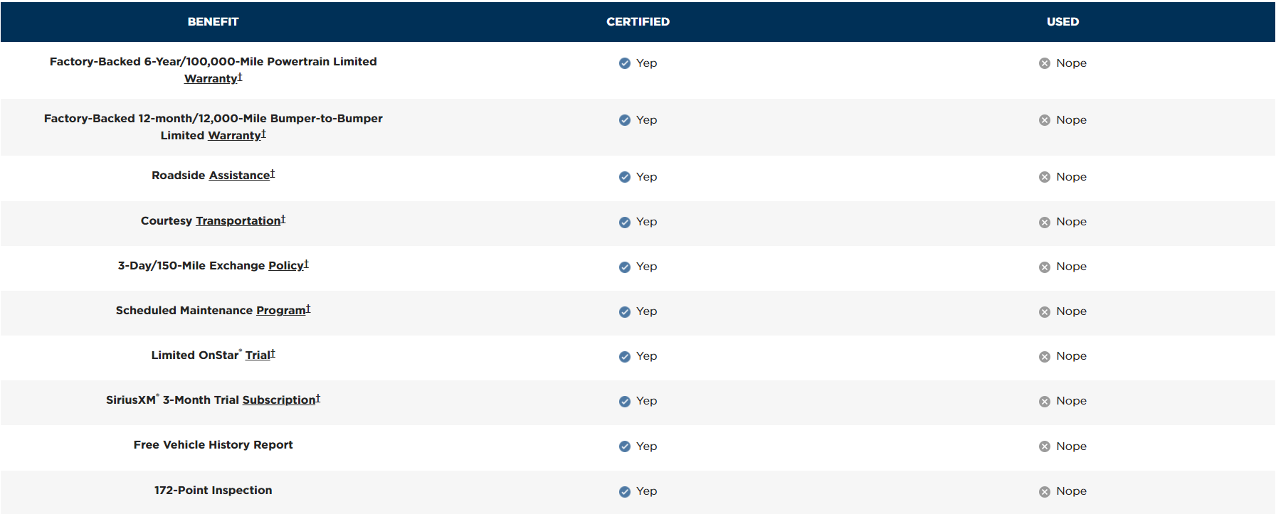 Before a Certified Pre-Owned vehicle is listed or sold, GM requires dealers to complete all safety recalls. However, because even the best processes can break down, we encourage you to check the recall status of any vehicle at my.gm.com/recalls and www.SaferCar.gov.