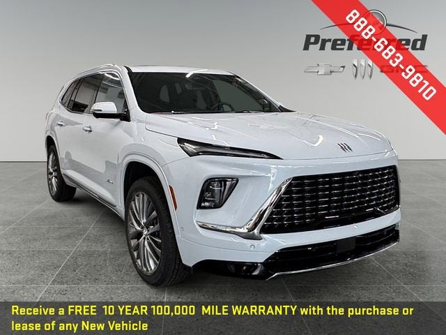 Iridescent White Tricoat 2026 Buick Enclave Avenir Receive a FREE 10 YEAR 100,000 MILE WARRANTY with the purchase or lease of any New Vehicle, All Buicks come with free pickup and delivery for service within 100 Miles, Automatic Transmission, Special Paint, FWD, Automatic temperature control, Bose Performance 16-Speaker Audio System with Subwoofer, Floor Liner Package, Front Bucket Seats, Front dual zone A/C, Heated door mirrors, Heated Driver and Front Passenger Seats, Heated rear seats, Heated steering wheel, Navigation System, Power door mirrors, Power Liftgate, Power moonroof, Super Cruise Package, Ventilated Driver and Front Passenger Seats, Ventilated rear seats.
