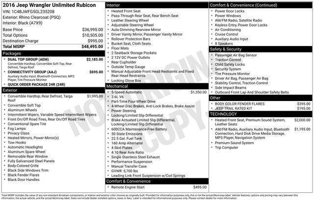 Imagine the thrill of conquering the great outdoors in this capable and well-equipped Wrangler. With its exceptional performance, advanced technology, and uncompromising Jeep heritage, this Rubicon model is a must-see for any true enthusiast.