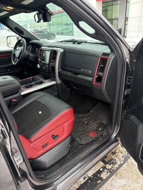 Luxury Group (Auto-Dimming Exterior Mirrors, Exterior Mirrors Courtesy Lamps, Exterior Mirrors w/Supplemental Signals, Glove Box Lamp, LED Bed Lighting, Overhead Console w/Garage Door Opener, Power Folding Mirrors, Power Heated Fold-Away Mirrors, Rear Dome w/On/Off Switch Lamp, Rear-View Auto-Dimming Mirror w/Microphone, Sun Visors w/Illuminated Vanity Mirrors, Underhood Lamp, and Universal Garage Door Opener), Protection Group, Quick Order Package 26W Rebel (Dual Rear Exhaust w/Bright Tips, Flat Black 5.7L Hemi Badge, Flat Black Ram 1500 Badge, and Ram Glove Box Badge), Rear Camera & Park Assist Group (ParkSense Rear Park Assist System, ParkView Rear Back-Up Camera, and Rear View Auto Dim Mirror w/Display), Remote Start & Security Alarm Group (Security Alarm), Trailer Tow Mirrors & Brake Group (Power Black Trailer Tow Mirrors, Trailer Brake Control, and Trailer Tow Mirrors), 1 Yr. Trial (Registration Required), 3.92 Rear Axle Ratio, 32 Gallon Fuel Tank, 4-Wheel Disc Brakes, 5-Year SiriusXM Traffic Service, 5-Year SiriusXM Travel Link Service, 6 Speakers, 8.4 Touchscreen Display, 9 Alpine Speakers w/Subwoofer, ABS brakes, Air Conditioning, Air Conditioning ATC w/Dual Zone Control, Alloy wheels, AM/FM radio, Anti-Spin Differential Rear Axle, Auto-leveling suspension, Black Tubular Side Steps, Brake assist, Compass, Delay-off headlights, Driver door bin, Dual front impact airbags, Dual front side impact airbags, Electronic Shift, Electronic Stability Control, For Details Visit DriveUconnect.com, Front anti-roll bar, Front Bucket Seats, Front Center Armrest w/Storage, Front fog lights, Front reading lights, Front wheel independent suspension, Fully automatic headlights, GPS Antenna Input, GPS Navigation, HD Radio, Heated door mirrors, Heated front seats, Heated steering wheel, Illuminated entry, Integrated Voice Command w/Bluetooth®, Keyless Enter-N-Go, Leather steering wheel, Low tire pressure warning, Manufacturer's Statement of Origin, Media Hub (SD, USB, AUX), Occupant sensing airbag, Outside temperature display, Overhead airbag, Overhead console, Panic alarm, Passenger door bin, Passenger vanity mirror, Power door mirrors, Power driver seat, Power passenger seat, Power steering, Power Sunroof, Power windows, Premium Cloth Seats w/Emboss Tread Pattern, Radio data system, Radio: Uconnect 5.0, Radio: Uconnect 8.4 NAV, RamBox Cargo Management System, Rear anti-roll bar, Rear seat center armrest, Rear step bumper, Rear Window Defroster, Rebel Instrument Cluster, Remote keyless entry, Remote Proximity Keyless Entry, Remote SD Card Slot, Single Disc Remote CD Player, SIRIUSXM Satellite Radio, SIRIUSXM Traffic, SiriusXM Travel Link, Speed control, Split folding rear seat, Spray In Bedliner, Steering wheel mounted audio controls, Tachometer, Tilt steering wheel, Tip Start, Tonneau Cover w/Embossed Ram's Head, Traction control, Trip computer, Uconnect Access, Uconnect Access 1 Year Trial, Variably intermittent wipers, Voltmeter, and Wheels: 17 x 8 Aluminum w/Matte Black PockeT.