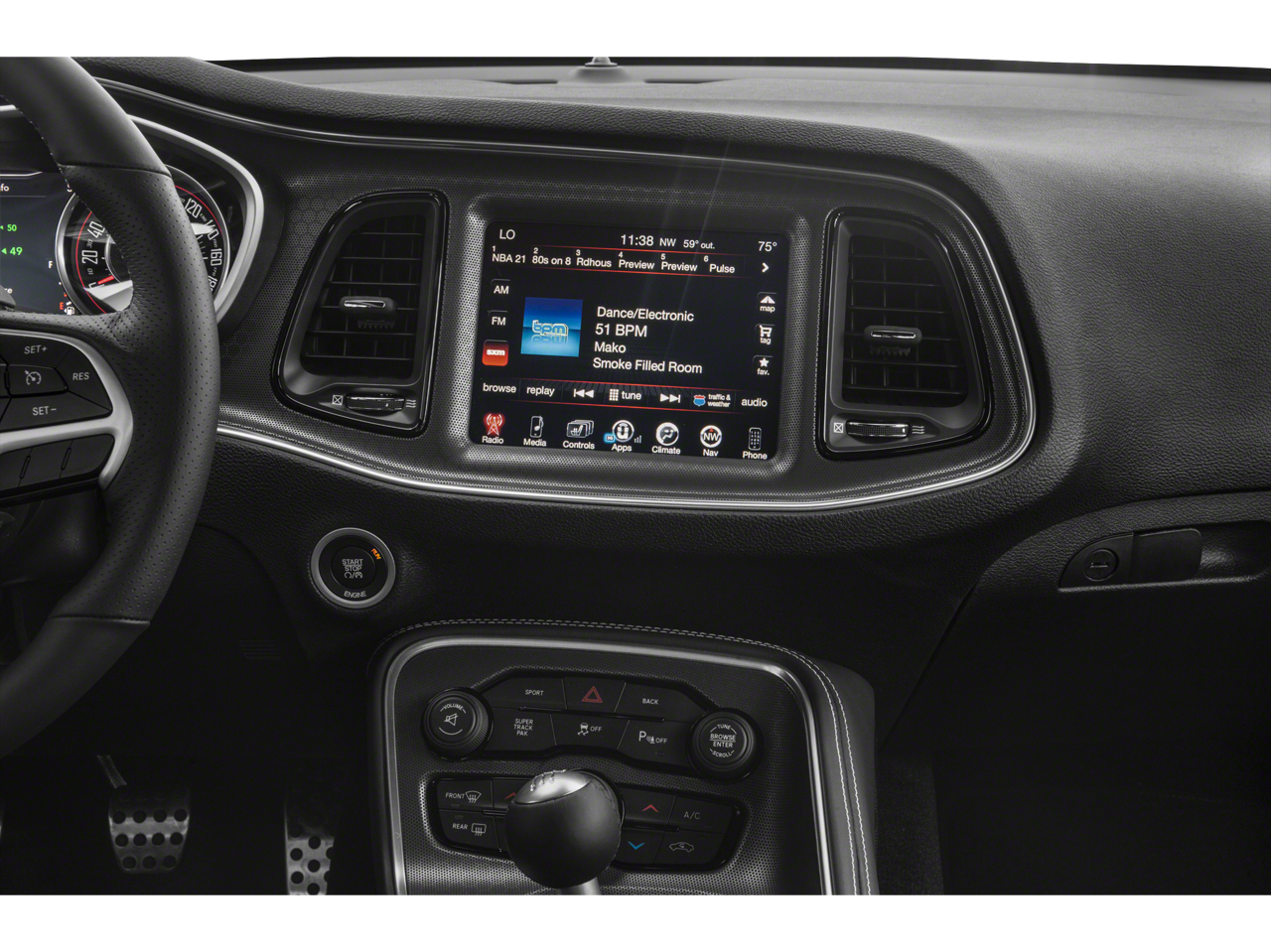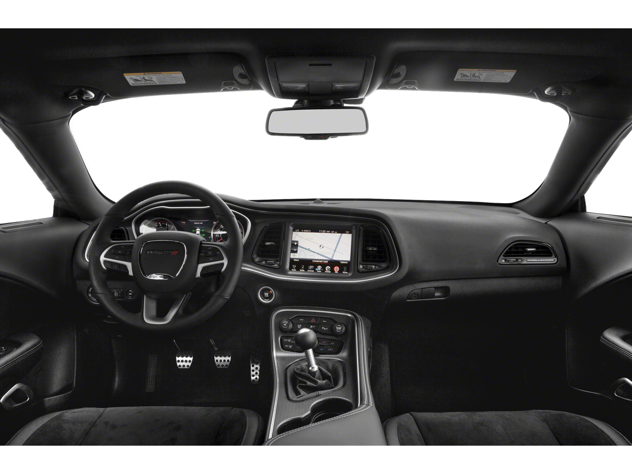 Step inside the cabin, and you'll be greeted by a host of premium features that elevate the driving experience. The Uconnect 4C infotainment system with an 8.4-inch touchscreen display puts cutting-edge connectivity at your fingertips, seamlessly integrating with your smartphone via Apple CarPlay and Android Auto. The White Face Instrument Cluster and Scat Pack Logo Houndstooth Seats provide a refined and sporty ambiance, while the Heated Steering Wheel and Dual-Zone Automatic Climate Control ensure your comfort no matter the weather.