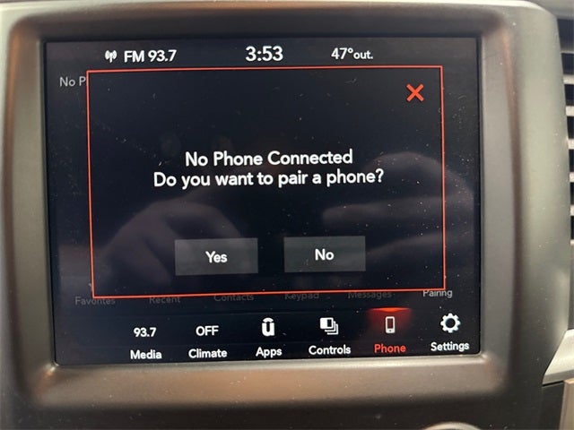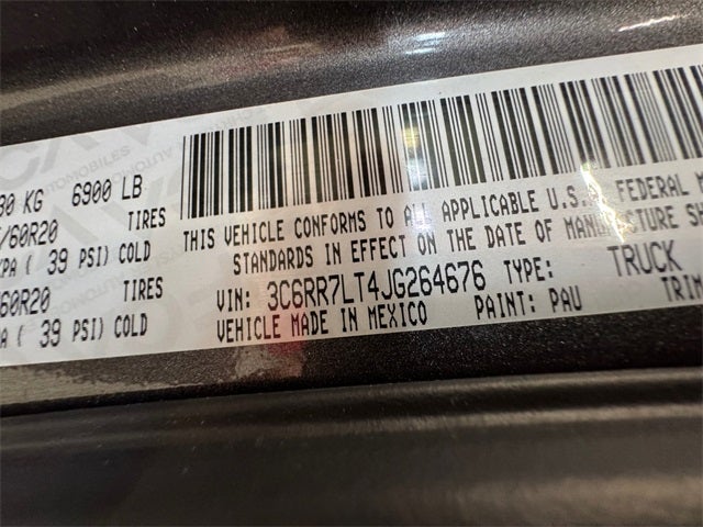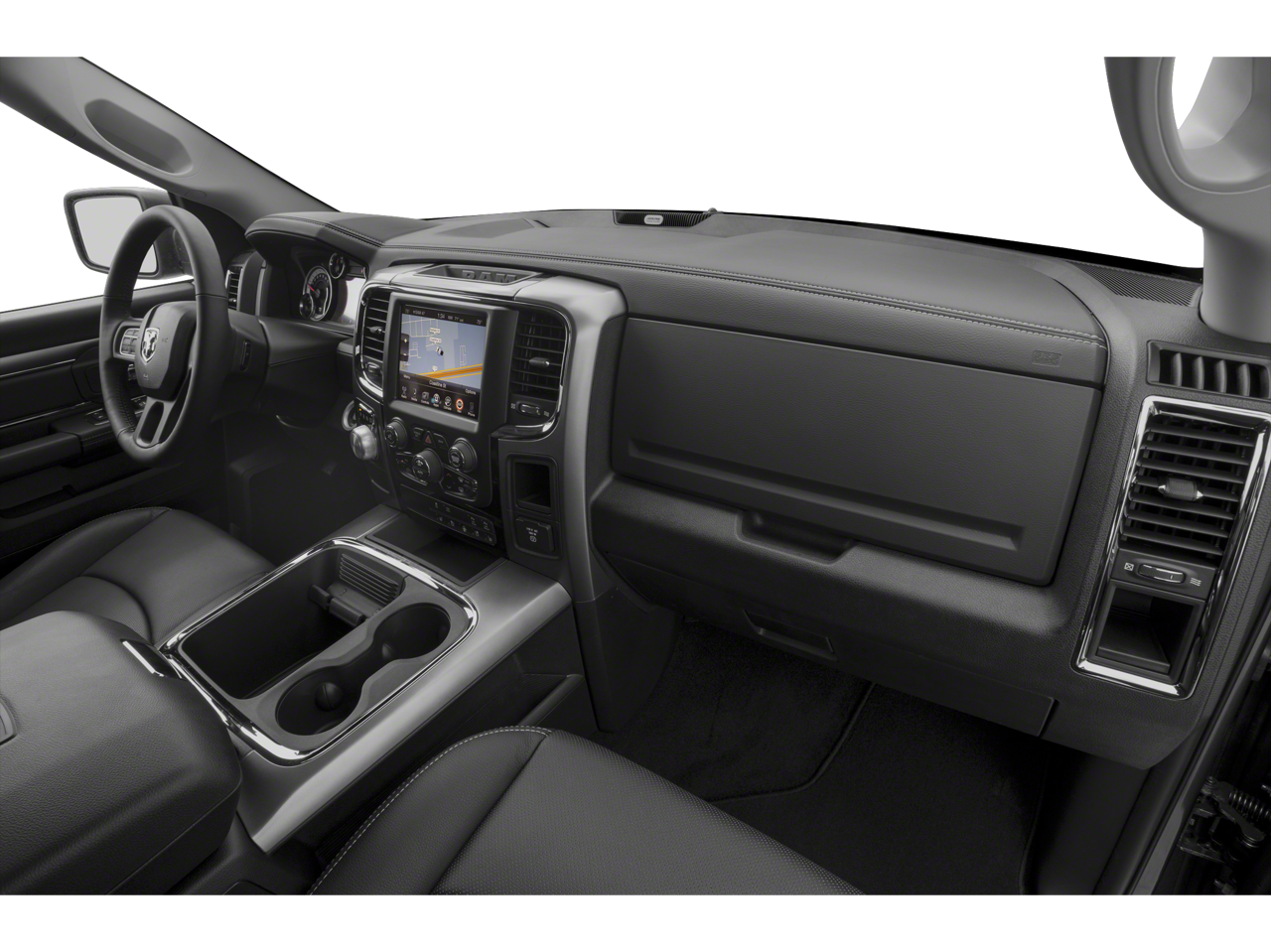 Big Horn Regional Package, Quick Order Package 27S Big Horn (1-Yr SiriusXM Guardian Trial, 115V Auxiliary Power Outlet, 40/20/40 Split Bench Seat, 8.4 Touchscreen Display, Apple CarPlay, Audio Jack Input for Mobile Devices, Auto-Dimming Exterior Mirrors, Auto-Dimming Rear-View Mirror, Big Horn Badge, Bright/Bright Billets Grille, Charge Only Remote USB Port, Dual Rear Exhaust w/Bright Tips, Electric Shift-On-Demand Transfer Case, Electroluminescent Instrument Cluster, Exterior Mirrors Courtesy Lamps, Exterior Mirrors w/Supplemental Signals, Folding Flat Load Floor Storage, Front Armrest w/3 Cupholders, Front Center Seat Cushion Storage, Front Fog Lamps, Glove Box Lamp, Google Android Auto, GPS Antenna Input, HD Radio, Integrated Voice Command w/Bluetooth®, Leather Wrapped Steering Wheel, LED Bed Lighting, Media Hub (2 USB, AUX), Overhead Console w/Garage Door Opener, ParkSense Front/Rear Park Assist System, Power 10-Way Driver Seat, Power Heated Fold-Away Mirrors, Power Lumbar Adjust, Power-Folding Mirrors, Premium Cloth 40/20/40 Bench Seat, Radio: Uconnect 4C w/8.4 Display, Rear 60/40 Split Folding Seat, Rear Dome w/On/Off Switch Lamp, Rear Floor Mats, Rear Power Sliding Window, Remote Start System, Remote USB Port, Security Alarm, SiriusXM Satellite Radio, Steering Wheel Mounted Audio Controls, Storage Tray, Sun Visors w/Illuminated Vanity Mirrors, Universal Garage Door Opener, USB Host Flip, and Wheels: 20 x 8 Aluminum Chrome Clad), 3.21 Rear Axle Ratio, 4-Wheel Disc Brakes, 6 Speakers, ABS brakes, Active Grille Shutters, Air Conditioning, Alloy wheels, AM/FM radio: SiriusXM, Black Exterior Mirrors, Brake assist, Bumpers: chrome, Center Hub, Class IV Receiver Hitch (DISC), Compass, Delay-off headlights, Driver door bin, Dual front impact airbags, Dual front side impact airbags, Electronic Shift, Electronic Stability Control, Exterior Mirrors w/Heating Element, Front anti-roll bar, Front Center Armrest w/Storage, Front reading lights, Front wheel independent suspension, Fully automatic headlights, Heated door mirrors, Illuminated entry, Low tire pressure warning, Manufacturer's Statement of Origin, Occupant sensing airbag, Outside temperature display, Overhead airbag, Overhead console, Panic alarm, ParkView Rear Back-Up Camera, Passenger door bin, Passenger vanity mirror, Power door mirrors, Power steering, Power windows, Radio data system, Rear anti-roll bar, Rear seat center armrest, Rear step bumper, Remote keyless entry, Speed control, Tachometer, Tilt steering wheel, Tip Start, Traction control, Trip computer, Variably intermittent wipers, and Voltmeter.
