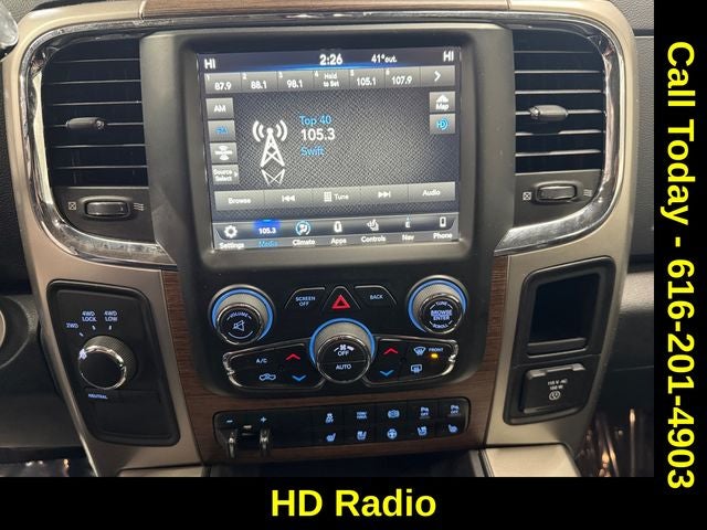 Protection Group, Quick Order Package 2FH Laramie (Front Armrest w/Cupholders), 1-Year SiriusXM Guardian Trial, 10 Speakers, 5-Year SiriusXM Traffic Service, 5-Year SiriusXM Travel Link Service, 8.4 Touchscreen Display, GPS Antenna Input, GPS Navigation, HD Radio, Heated Front Seats, Heated front seats, Integrated Center Stack Radio, Integrated Voice Command w/Bluetooth®, Media Hub (2 USB, AUX), Memory seat, ParkView Rear Back-Up Camera, Power driver seat, Power Folding Mirrors, Radio: Uconnect 4C Nav w/8.4 Display, SiriusXM Satellite Radio, SiriusXM Traffic Plus, SiriusXM Travel Link, Turn signal indicator mirrors, 115V Auxiliary Power Outlet, 4-Wheel Disc Brakes, 40/20/40 Split Bench Seat, ABS brakes, Air Conditioning, Alloy wheels, AM/FM radio: SiriusXM, Apple CarPlay/Android Auto, Audio memory, Auto-dimming door mirrors, Auto-dimming Rear-View mirror, Automatic temperature control, Black Exterior Mirrors, Brake assist, Bumpers: chrome, Chrome Exterior Mirrors, Compass, CTR Stop Lamp w/Cargo View Camera, Delay-off headlights, Driver door bin, Driver vanity mirror, Dual front impact airbags, Dual front side impact airbags, Electronic Stability Control, Emergency communication system: SiriusXM Guardian, Exterior Mirrors Courtesy Lamps, Exterior Mirrors w/Memory, Exterior Mirrors w/Supplemental Signals, Front anti-roll bar, Front Center Armrest w/Storage, Front dual zone A/C, Front fog lights, Front reading lights, Fully automatic headlights, Garage door transmitter, Heated door mirrors, Heated steering wheel, Illuminated entry, Keyless Enter-N-Go, Leather steering wheel, Leather Trim 40/20/40 Bench Seat, LED Bed Lighting, Low tire pressure warning, Manufacturer's Statement of Origin, Occupant sensing airbag, Outside temperature display, Overhead airbag, Overhead console, Panic alarm, Passenger door bin, Passenger vanity mirror, Power door mirrors, Power Folding Chrome Trailer Tow Mirrors, Power passenger seat, Power steering, Power windows, Radio data system, Radio: Uconnect 4C w/8.4 Display, Rear seat center armrest, Rear step bumper, Remote keyless entry, Remote Proximity Keyless Entry, Remote Start System, Security system, Speed control, Split folding rear seat, Steering wheel mounted audio controls, Tachometer, Tilt steering wheel, Traction control, Trailer Tow Mirrors, Trip computer, Variably intermittent wipers, Vendor Painted Cargo Box Tracking, Ventilated front seats, Voltmeter, and Wheels: 18 x 8.0 Polished Aluminum.