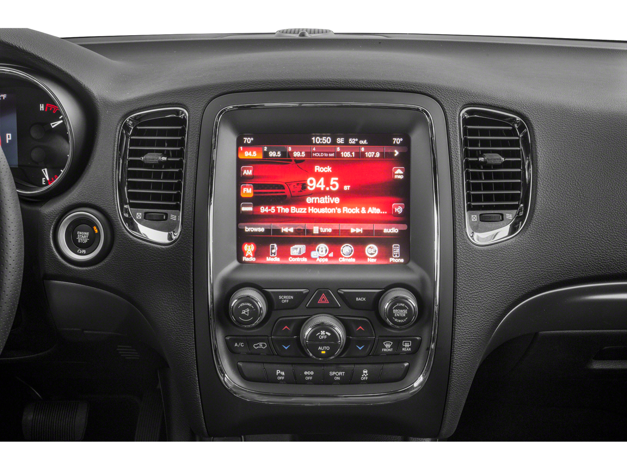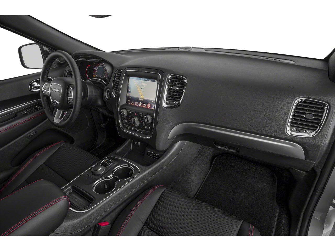 The refined interior, with its Leather-Wrapped Steering Wheel and Suede Bucket Seats, creates a sophisticated and comfortable driving experience. Elevate your commute and weekend adventures with the Durango's smooth handling, ample cargo space, and advanced technology.