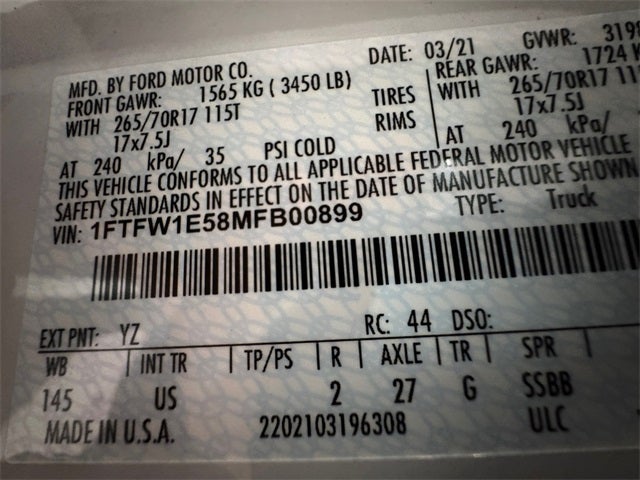 Oxford White 2021 Ford F-150 XLT 5.0 Liter V8 SuperCrew 4WD 5.0 Liter V8 SuperCrew 4WD 4WD 10-Speed Automatic 5.0L V8 16/22 City/Highway MPG