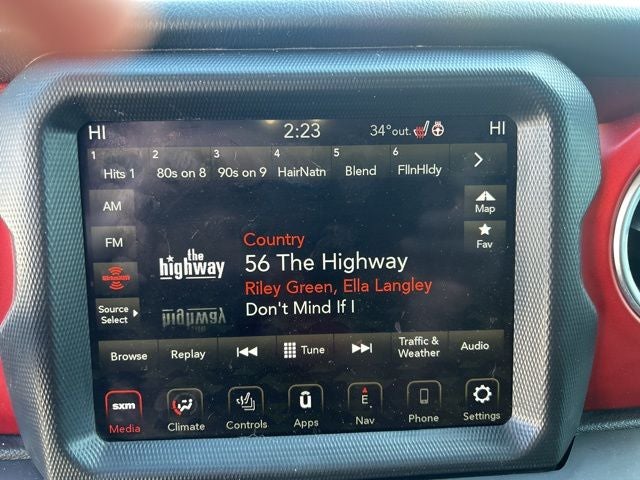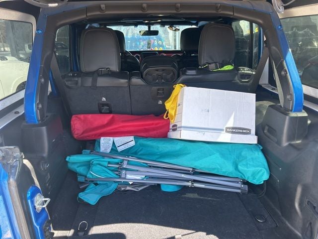 8.4 Radio & Premium Audio Group (1-Year SiriusXM Guardian Trial, 4G LTE Wi-Fi Hot Spot, 5-Year SiriusXM Traffic Service, 5-Year SiriusXM Travel Link Service, 8.4 Touchscreen Display, Alpine Premium Audio System, Auto-Dimming Rear-View Mirror, Emergency/Assistance Call, For Details, Visit DriveUconnect.com, GPS Navigation, HD Radio, Off-Road Info Pages, Radio: Uconnect 4C Nav w/8.4 Display, SiriusXM Traffic Plus, and SiriusXM Travel Link), Cold Weather Group (Heated Front Seats and Heated Steering Wheel), Quick Order Package 25R, Trailer Tow & HD Electrical Group (240 Amp Alternator, 7 & 4 Pin Wiring Harness, 700 Amp Maintenance Free Battery, Auxiliary Switches, and Class II Receiver Hitch), 4-Wheel Disc Brakes, 4.10 Rear Axle Ratio, 8 Speakers, ABS brakes, Air Conditioning, Alloy wheels, AM/FM radio: SiriusXM, Apple CarPlay/Android Auto, Automatic temperature control, Aux Battery, Black 3-Piece Hard Top, Brake assist, Compass, Delay-off headlights, Driver door bin, Driver vanity mirror, Dual front impact airbags, Dual front side impact airbags, Electronic Stability Control, Freedom Panel Storage Bag, Front anti-roll bar, Front Bucket Seats, Front Center Armrest w/Storage, Front dual zone A/C, Front fog lights, Front reading lights, Fully automatic headlights, Garage door transmitter, Heated door mirrors, Illuminated entry, Integrated roll-over protection, Leather steering wheel, Low tire pressure warning, MOPAR All-Weather Floor Mats (DISC), MOPAR Hardtop Headliner, No Soft Top, Non-Lock Fuel Cap w/o Discriminator, Occupant sensing airbag, Outside temperature display, Panic alarm, ParkView Rear Back-Up Camera, Passenger door bin, Passenger vanity mirror, Performance Suspension, Power door mirrors, Power steering, Power windows, Premium Cloth Low-Back Bucket Seats, Radio data system, Radio: Uconnect 4 w/7 Display, Rear anti-roll bar, Rear reading lights, Rear Window Defroster, Rear Window Wiper/Washer, Remote keyless entry, Remote Proximity Keyless Entry, Remote Start System, Security system, Speed control, Split folding rear seat, Steering wheel mounted audio controls, Stop-Start Dual Battery System, Tachometer, Telescoping steering wheel, Tilt steering wheel, Traction control, Trip computer, Variably intermittent wipers, Voltmeter, and Wheels: 17 x 7.5 Machined w/Black PocketS.