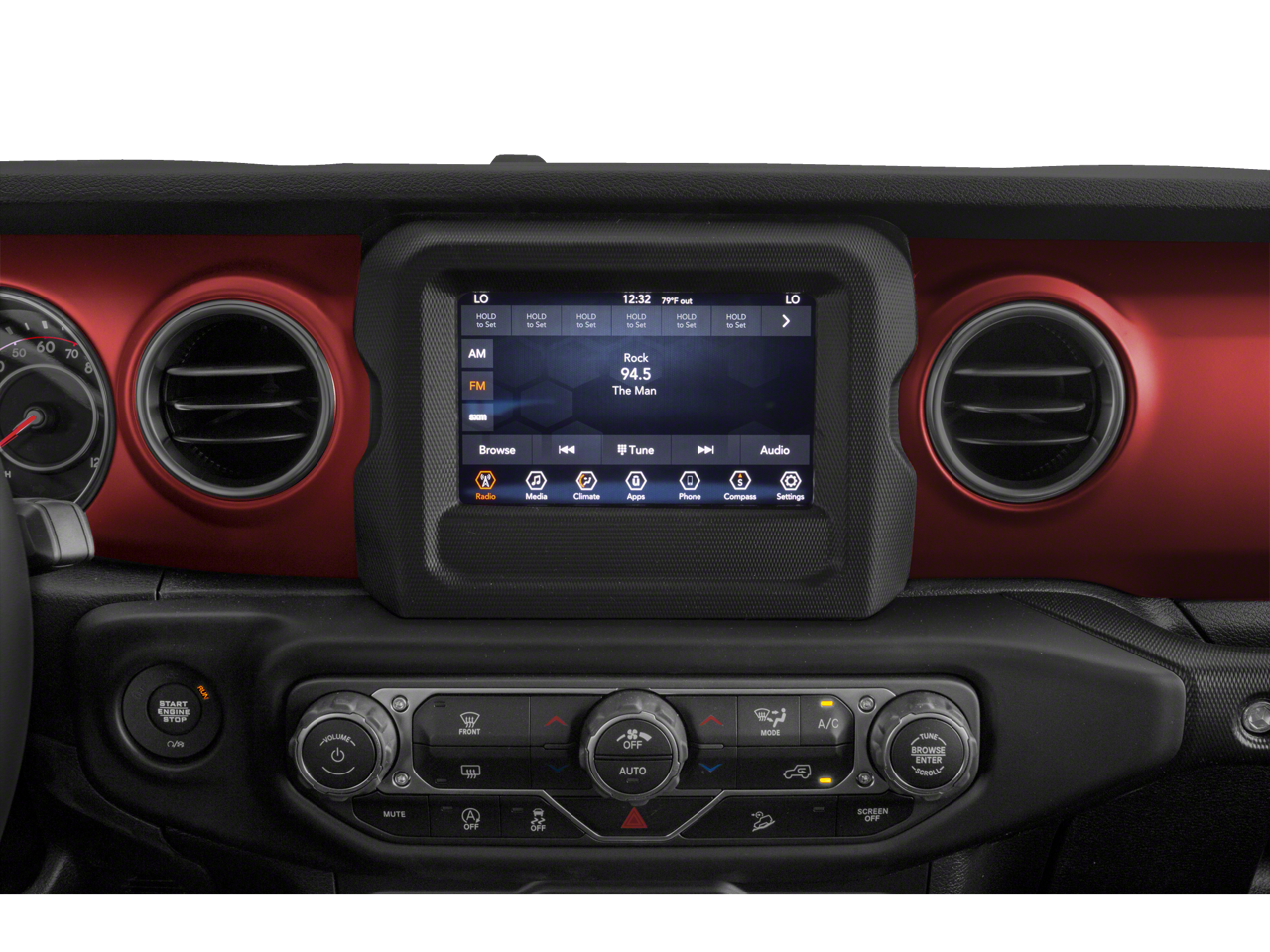 8.4 Radio & Premium Audio Group (1-Year SiriusXM Guardian Trial, 4G LTE Wi-Fi Hot Spot, 5-Year SiriusXM Traffic Service, 5-Year SiriusXM Travel Link Service, 8.4 Touchscreen Display, Alpine Premium Audio System, Auto-Dimming Rear-View Mirror, Emergency/Assistance Call, For Details, Visit DriveUconnect.com, GPS Navigation, HD Radio, Off-Road Info Pages, Radio: Uconnect 4C Nav w/8.4 Display, SiriusXM Traffic Plus, and SiriusXM Travel Link), Cold Weather Group (Heated Front Seats and Heated Steering Wheel), Quick Order Package 25R, Trailer Tow & HD Electrical Group (240 Amp Alternator, 7 & 4 Pin Wiring Harness, 700 Amp Maintenance Free Battery, Auxiliary Switches, and Class II Receiver Hitch), 4-Wheel Disc Brakes, 4.10 Rear Axle Ratio, 8 Speakers, ABS brakes, Air Conditioning, Alloy wheels, AM/FM radio: SiriusXM, Apple CarPlay/Android Auto, Automatic temperature control, Aux Battery, Black 3-Piece Hard Top, Brake assist, Compass, Delay-off headlights, Driver door bin, Driver vanity mirror, Dual front impact airbags, Dual front side impact airbags, Electronic Stability Control, Freedom Panel Storage Bag, Front anti-roll bar, Front Bucket Seats, Front Center Armrest w/Storage, Front dual zone A/C, Front fog lights, Front reading lights, Fully automatic headlights, Garage door transmitter, Heated door mirrors, Illuminated entry, Integrated roll-over protection, Leather steering wheel, Low tire pressure warning, MOPAR All-Weather Floor Mats (DISC), MOPAR Hardtop Headliner, No Soft Top, Non-Lock Fuel Cap w/o Discriminator, Occupant sensing airbag, Outside temperature display, Panic alarm, ParkView Rear Back-Up Camera, Passenger door bin, Passenger vanity mirror, Performance Suspension, Power door mirrors, Power steering, Power windows, Premium Cloth Low-Back Bucket Seats, Radio data system, Radio: Uconnect 4 w/7 Display, Rear anti-roll bar, Rear reading lights, Rear Window Defroster, Rear Window Wiper/Washer, Remote keyless entry, Remote Proximity Keyless Entry, Remote Start System, Security system, Speed control, Split folding rear seat, Steering wheel mounted audio controls, Stop-Start Dual Battery System, Tachometer, Telescoping steering wheel, Tilt steering wheel, Traction control, Trip computer, Variably intermittent wipers, Voltmeter, and Wheels: 17 x 7.5 Machined w/Black PocketS.