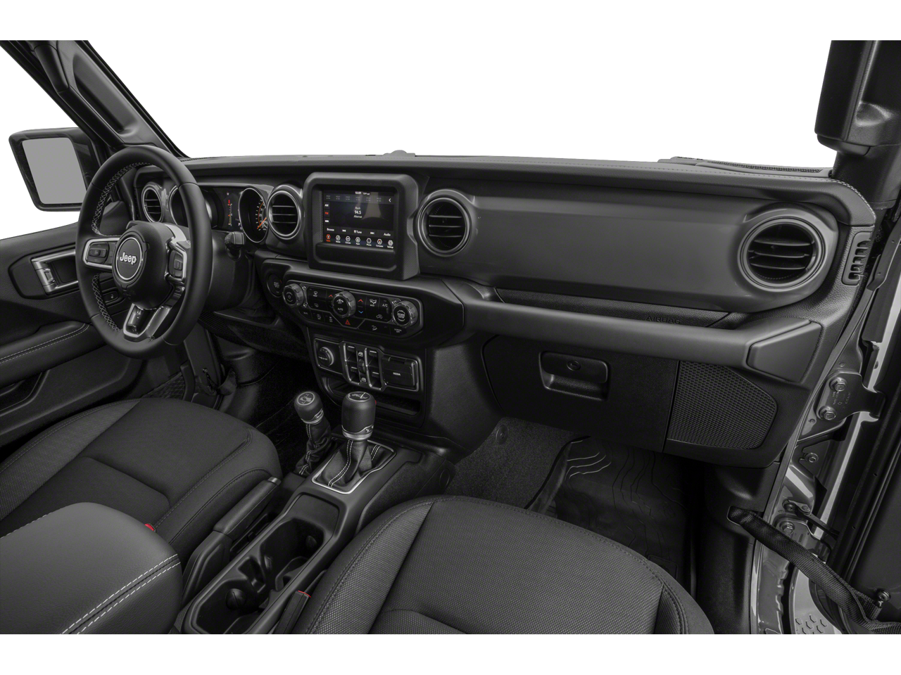 8.4 Radio & Premium Audio Group (1-Year SiriusXM Guardian Trial, 4G LTE Wi-Fi Hot Spot, 5-Year SiriusXM Traffic Service, 5-Year SiriusXM Travel Link Service, 8.4 Touchscreen Display, Alpine Premium Audio System, Auto-Dimming Rear-View Mirror, Emergency/Assistance Call, For Details, Visit DriveUconnect.com, GPS Navigation, HD Radio, Radio: Uconnect 4C Nav w/8.4 Display, SiriusXM Traffic Plus, and SiriusXM Travel Link), Altitude Package, Cold Weather Group (Heated Front Seats and Heated Steering Wheel), LED Lighting Group (Daytime Running Lamps LED Accents, Front LED Fog Lamps, LED Premium Reflector Headlamps, and LED Taillamps), Quick Order Package 22L Altitude (Black Interior Accents, Black Trail Rated Badge, Body Color 3-Piece Hard Top, Body Color Grille w/Gloss Black Rings, Leather Trimmed Bucket Seats, Leather Wrapped Park Brake Handle, Leather Wrapped Shift Knob, Matte Black Jeep Badge, Mold In Color Bumper w/Gloss Black, MOPAR Hardtop Headliner, Wheels: 18 x 7.5 Gloss Black Aluminum, and Wizard Black Instrument Panel Bezels), Safety Group (Blind Spot & Cross Path Detection and ParkSense Rear Park Assist System), 3.45 Rear Axle Ratio, 4-Wheel Disc Brakes, 8 Speakers, ABS brakes, Air Conditioning, Alloy wheels, AM/FM radio: SiriusXM, Anti-Spin Differential Rear Axle, Apple CarPlay, Apple CarPlay/Android Auto, Automatic temperature control, Aux Battery, Brake assist, Cloth Low-Back Bucket Seats, Compass, Delay-off headlights, Driver door bin, Driver vanity mirror, Dual front impact airbags, Dual front side impact airbags, Electronic Stability Control, Front anti-roll bar, Front Bucket Seats, Front Center Armrest w/Storage, Front dual zone A/C, Front fog lights, Front reading lights, Fully automatic headlights, Garage door transmitter, Glass Window Material, Google Android Auto, GPS Antenna Input, Heated door mirrors, Heavy Duty Suspension w/Gas Shocks, Illuminated entry, Integrated roll-over protection, Integrated Voice Command w/Bluetooth®, Leather steering wheel, Low tire pressure warning, Non-Lock Fuel Cap w/o Discriminator, Occupant sensing airbag, Outside temperature display, Panic alarm, ParkView Rear Back-Up Camera, Passenger door bin, Passenger vanity mirror, Power door mirrors, Power steering, Power windows, Radio data system, Radio: Uconnect 4 w/7 Display, Rear anti-roll bar, Rear reading lights, Remote keyless entry, Remote Proximity Keyless Entry, Remote Start System, Security system, Speed control, Split folding rear seat, Steering wheel mounted audio controls, Stop-Start Dual Battery System, Tachometer, Telescoping steering wheel, Tilt steering wheel, Traction control, Trip computer, Variably intermittent wipers, Voltmeter, and Wheels: 18 x 7.5 Polished w/Gray SpokeS.