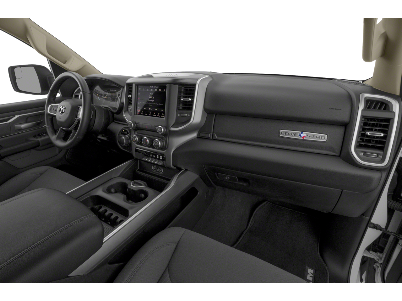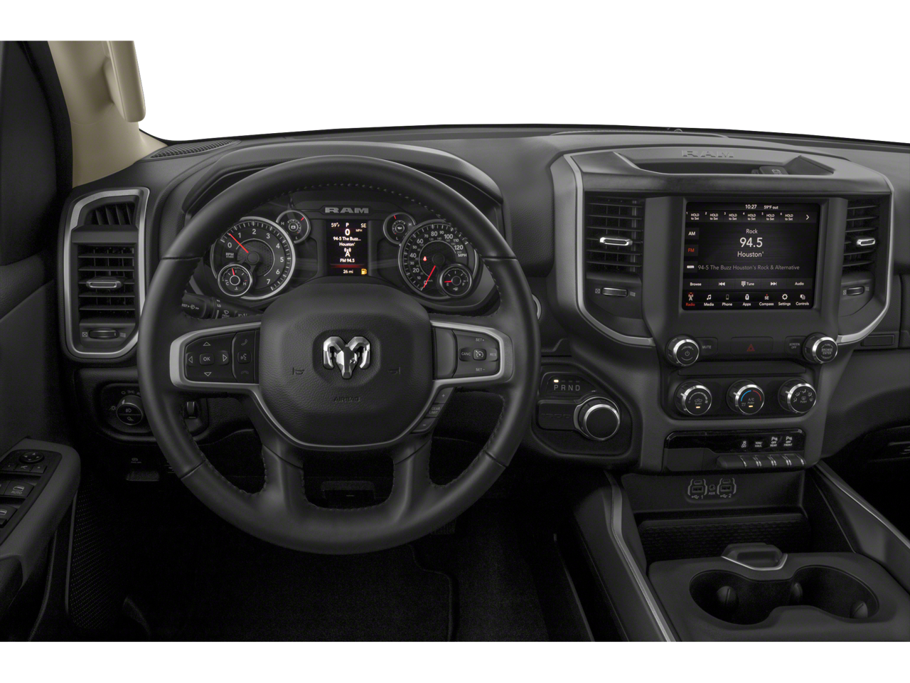 Big Horn Level 1 Equipment Group (Auto-Dimming Exterior Driver Mirror, Auto-Dimming Rear-View Mirror, Black Premium Power Mirrors, Class IV Receiver Hitch, Cluster 3.5 TFT Color Display, Exterior Mirrors Courtesy Lamps, Exterior Mirrors w/Supplemental Signals, Foam Bottle Insert (Door Trim Panel), For More Info, Call 800-643-2112, Glove Box Lamp, Power 4-Way Driver Lumbar Adjust, Power 8-Way Driver Seat, Power Adjustable Pedals, Power-Folding Mirrors, Radio: Uconnect 4 w/8.4 Display, Rear Dome w/On/Off Switch Lamp, Rear Power Sliding Window, Rear Window Defroster, SiriusXM Radio Service, SiriusXM Satellite Radio, Sun Visors w/Illuminated Vanity Mirrors, and Universal Garage Door Opener), Quick Order Package 23Z Big Horn (Big Horn Badge), 3 Rear Seat Head Restraints, 4 Way Front Headrests, 4-Wheel Disc Brakes, 40/20/40 Split Bench Seat, 48V Belt Starter Generator, 6 Speakers, ABS brakes, Air Conditioning, Alloy wheels, AM/FM radio, Black Exterior Mirrors, Brake assist, Bumpers: chrome, Cloth Bench Seat, Compass, Delay-off headlights, Driver door bin, Dual front impact airbags, Dual front side impact airbags, Electronic Stability Control, Front anti-roll bar, Front Center Armrest w/Storage, Front fog lights, Front reading lights, Front Seat Back Map Pockets, Front wheel independent suspension, Fully automatic headlights, GPS Antenna Input, Heated door mirrors, Illuminated entry, Integrated Voice Command w/Bluetooth®, Leather steering wheel, Low tire pressure warning, Manual Adjust 4-Way Front Passenger Seat, Manufacturer's Statement of Origin, MOPAR Front & Rear Rubber Floor Mats, Occupant sensing airbag, Outside temperature display, Overhead airbag, Overhead console, Panic alarm, ParkView Rear Back-Up Camera, Passenger door bin, Passenger vanity mirror, Power door mirrors, Power steering, Power windows, Radio data system, Radio: Uconnect 3 w/5 Display, Rear 60/40 Folding Seat, Rear anti-roll bar, Rear seat center armrest, Rear step bumper, Remote keyless entry, Remote Start System, Speed control, Split folding rear seat, Steering wheel mounted audio controls, Tachometer, Telescoping steering wheel, Tilt steering wheel, Traction control, Trip computer, Variably intermittent wipers, Voltmeter, and Wheels: 18 x 8 Cast-Aluminum Painted.