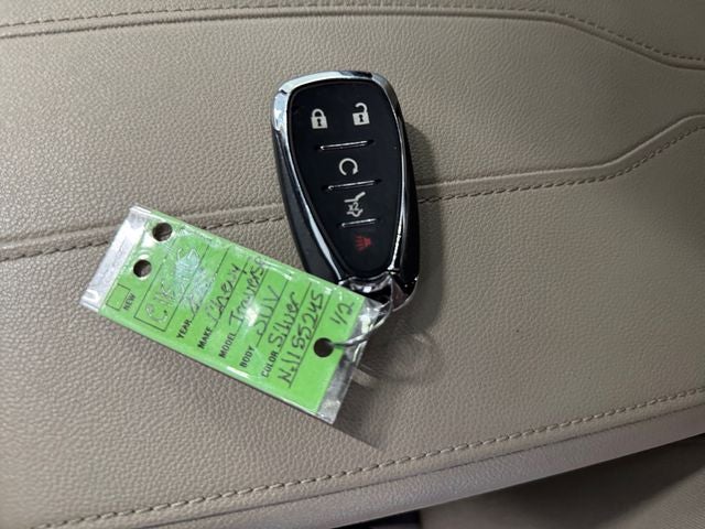 Preferred Equipment Group 1LT (Heated Driver & Front Passenger Seats and Rear Park Assist w/Audible Warning), 2-Way Manual Front Passenger Seat Adjuster, 3.49 Axle Ratio, 3rd row seats: split-bench, 4-Wheel Disc Brakes, 6 Speakers, 6-Speaker Audio System Feature, 8-Way Power Driver Seat Adjuster, ABS brakes, Air Conditioning, Alloy wheels, AM/FM radio: SiriusXM, Apple CarPlay/Android Auto, Auto High-beam Headlights, Automatic temperature control, Black Roof Rails, Brake assist, Bumpers: body-color, Compass, Delay-off headlights, Driver door bin, Driver vanity mirror, Dual front impact airbags, Dual front side impact airbags, Electronic Stability Control, Emergency communication system: OnStar Guidance, Exterior Parking Camera Rear, Four wheel independent suspension, Front anti-roll bar, Front Bucket Seats, Front Center Armrest, Front dual zone A/C, Front reading lights, Fully automatic headlights, Garage door transmitter, Heated door mirrors, Heated front seats, Illuminated entry, Leather steering wheel, Low tire pressure warning, Not Equipped w/Rear Park Assist, Occupant sensing airbag, Outside temperature display, Overhead airbag, Overhead console, Panic alarm, Passenger door bin, Passenger vanity mirror, Power door mirrors, Power Driver Lumbar Control, Power driver seat, Power Liftgate, Power steering, Power windows, Premium Cloth Seat Trim, Radio data system, Radio: Chevrolet Infotainment 3 Plus System, Rear air conditioning, Rear anti-roll bar, Rear reading lights, Rear window defroster, Rear window wiper, Remote keyless entry, Roof rack: rails only, Security system, SiriusXM w/360L, Speed control, Speed-sensing steering, Spoiler, Steering wheel mounted audio controls, Tachometer, Telescoping steering wheel, Tilt steering wheel, Traction control, Trip computer, Turn signal indicator mirrors, Variably intermittent wipers, Voltmeter, and Wheels: 18 Bright Silver-Painted Aluminum.
