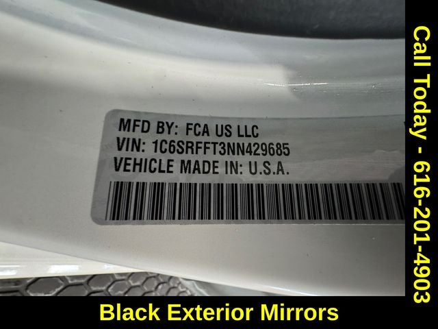 Big Horn Level 2 Equipment Group (115V Auxiliary Power Outlet, 115V Auxiliary Rear Power Outlet, 2nd Row In Floor Storage Bins, 400W Inverter, 4G LTE Wi-Fi Hot Spot, 8.4 Touchscreen Display, Air Conditioning ATC w/Dual Zone Control, Apple CarPlay, Auto-Dimming Exterior Driver Mirror, Auto-Dimming Rear-View Mirror, Black Exterior Mirrors, Black Premium Power Mirrors, Bluetooth® Handsfree Phone & Audio, Class IV Receiver Hitch, Cluster 7.0 TFT Color Display, Connectivity - US/Canada, Convex Wide-Angle Mirror Insert, Exterior Mirrors Courtesy Lamps, Exterior Mirrors w/Heating Element, Exterior Mirrors w/Supplemental Signals, For Details, Visit DriveUconnect.com, Global Telematics Box Module (TBM), Glove Box Lamp, Google Android Auto, GPS Antenna Input, Heated Front Seats, Heated Steering Wheel, Integrated Center Stack Radio, Media Hub w/2 Charge Only USBs, ParkSense Front/Rear Park Assist w/Stop, Power 2-Way Driver Lumbar Adjust, Power 8-Way Driver Seat, Power Adjustable Pedals, Power-Folding Mirrors, Radio: Uconnect 5 W w/8.4 Display, Rear Dome w/On/Off Switch Lamp, Rear Power Sliding Window, Rear Window Defroster, Remote Start System, Security Alarm, SiriusXM Radio Service, SiriusXM Satellite Radio, Sun Visors w/Illuminated Vanity Mirrors, Universal Garage Door Opener, and USB Host Flip), Sport Appearance Package (3 Rear Seat Head Restraints, 4 Way Front Headrests, All Plant-Installed Decals, Black Interior Accents, Body Color Exterior Mirrors, Body Color Front Bumper, Body Color Premium Power Mirrors, Body Colo