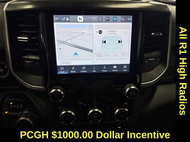 The spacious Crew Cab design provides ample room for passengers and cargo, while the Big Horn/Ione Star trim level offers a wealth of premium features to enhance your driving experience. Enjoy the convenience of the Uconnect 5 Nav system with an 8.4 touchscreen display, complete with integrated navigation, Apple CarPlay, and a high-definition audio system.