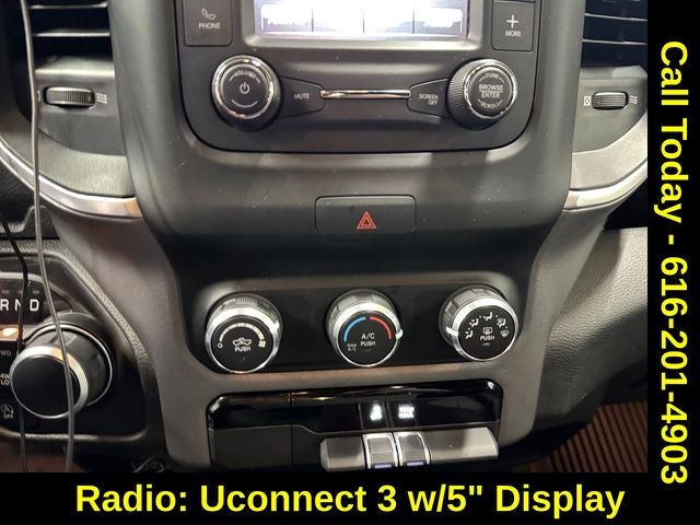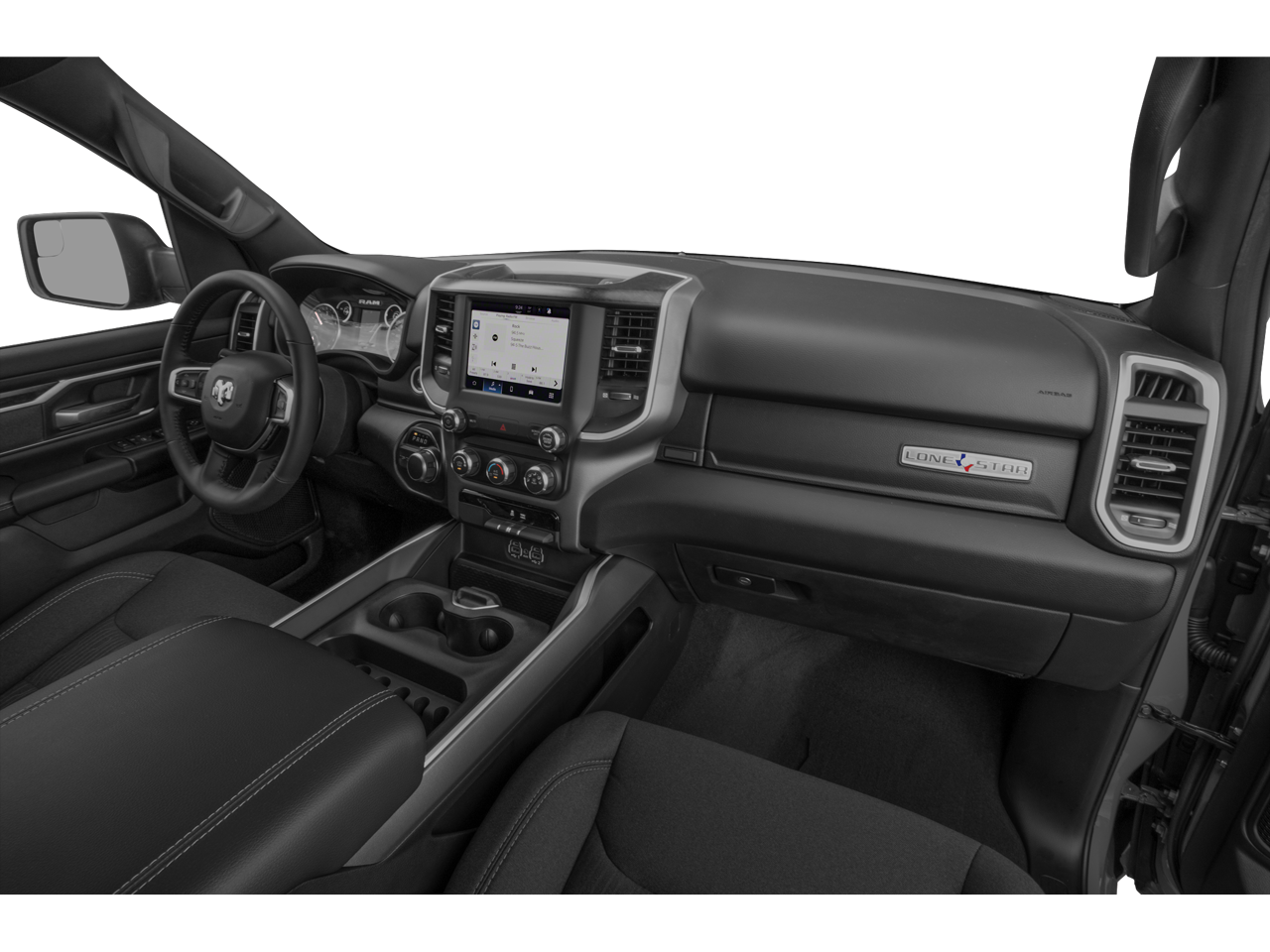 Quick Order Package 27Z Big Horn (Big Horn Badge), 1500 Big Horn/Lone Star 5.7 Liter V8 Hemi Crew Cab 4WD, Black Exterior Mirrors, Heated door mirrors, ParkView Rear Back-Up Camera, Power door mirrors, Radio: Uconnect 3 w/5 Display, Rear step bumper, 3 Rear Seat Head Restraints, 3.21 Rear Axle Ratio, 4 Way Front Headrests, 4-Wheel Disc Brakes, 48V Belt Starter Generator, 6 Speakers, ABS brakes, Air Conditioning, Alloy wheels, AM/FM radio, Brake assist, Bumpers: chrome, Cloth Bench Seat, Compass, Convex Wide-Angle Mirror Insert, Delay-off headlights, Driver door bin, Dual front impact airbags, Dual front side impact airbags, Electronic Stability Control, Emergency communication system: SiriusXM Guardian, Front anti-roll bar, Front Center Armrest w/Storage, Front fog lights, Front reading lights, Front Seat Back Map Pockets, Front wheel independent suspension, Fully automatic headlights, Global Telematics Box Module (TBM), GPS Antenna Input, Heavy-Duty Engine Cooling, Illuminated entry, Integrated Voice Command w/Bluetooth®, Leather steering wheel, Low tire pressure warning, MOPAR Front & Rear Rubber Floor Mats, Occupant sensing airbag, Outside temperature display, Overhead airbag, Overhead console, Panic alarm, Passenger door bin, Passenger vanity mirror, Power steering, Power windows, Radio data system, Rear 60/40 Folding Seat, Rear anti-roll bar, Rear seat center armrest, Remote keyless entry, Speed control, Split folding rear seat, Steering wheel mounted audio controls, Tachometer, Telescoping steering wheel, Tilt steering wheel, Traction control, Trip computer, Variably intermittent wipers, Voltmeter, Wheels: 18 x 8 Cast-Aluminum Painted, and Wheels: 20 x 9 Aluminum Chrome Clad (WRK)