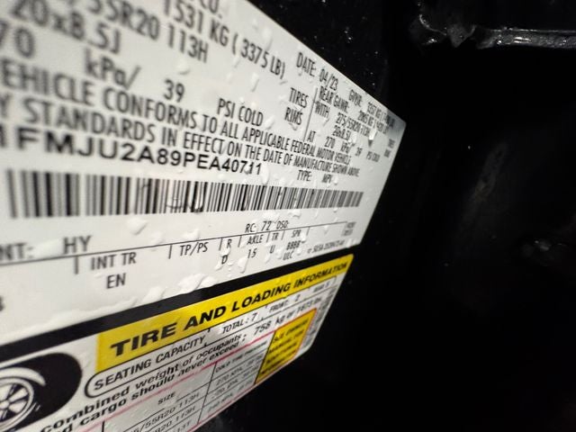 Equipment Group 301A Mid Package (Panoramic Vista Roof), 4WD, 12 Speakers, 3.31 Axle Ratio, 3rd row seats: split-bench, 4-Wheel Disc Brakes, ABS brakes, Adjustable pedals, Air Conditioning, Alloy wheels, AM/FM radio: SiriusXM with 360L, Auto High-beam Headlights, Auto Start-Stop Removal (DISC), Auto-dimming door mirrors, Auto-dimming Rear-View mirror, Automatic temperature control, Brake assist, Bumpers: body-color, Compass, Delay-off headlights, Driver door bin, Driver vanity mirror, Dual front impact airbags, Dual front side impact airbags, Electronic Stability Control, Emergency communication system: SYNC 4 911 Assist, Exterior Parking Camera Rear, Four wheel independent suspension, Front anti-roll bar, Front Bucket Seats, Front Center Armrest, Front dual zone A/C, Front fog lights, Front License Plate Bracket, Front reading lights, Fully automatic headlights, Garage door transmitter, Heated & Ventilated Leather Front Captain's Chairs, Heated door mirrors, Heated front seats, Heated rear seats, Heated steering wheel, Illuminated entry, Leather steering wheel, Low tire pressure warning, Memory seat, Navigation system: Connected Navigation, Occupant sensing airbag, Outside temperature display, Overhead airbag, Overhead console, Panic alarm, Passenger door bin, Passenger vanity mirror, Pedal memory, Power door mirrors, Power driver seat, Power Liftgate, Power moonroof, Power passenger seat, Power steering, Power windows, Radio data system, Radio: B&O Sound System by Bang & Olufsen, Rain sensing wipers, Rear air conditioning, Rear anti-roll bar, Rear reading lights, Rear window defroster, Rear window wiper, Reclining 3rd row seat, Remote keyless entry, Second Row Power Windows Removal, Security system, SiriusXM w/360L, Speed control, Speed-sensing steering, Speed-Sensitive Wipers, Split folding rear seat, Spoiler, Steering wheel memory, Steering wheel mounted audio controls, SYNC 4 w/Enhanced Voice Recognition, Tachometer, Telescoping steering wheel, Tilt steering wheel, Traction control, Trip computer, Turn signal indicator mirrors, Variably intermittent wipers, Ventilated front seats, Voltmeter, and Wheels: 20 Bright Machined Aluminum.