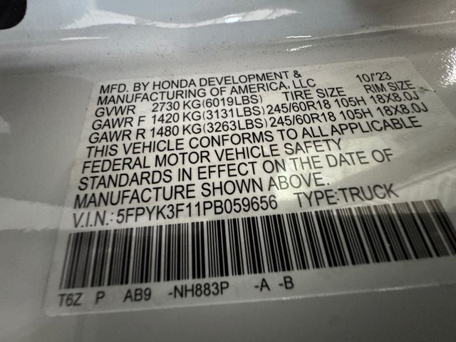 White 2023 Honda Ridgeline Sport 3.5 Liter V6 Crew Cab AWD AWD 9-Speed Automatic 18/24 City/Highway MPG 3.5L V6 SOHC i-VTEC 24V