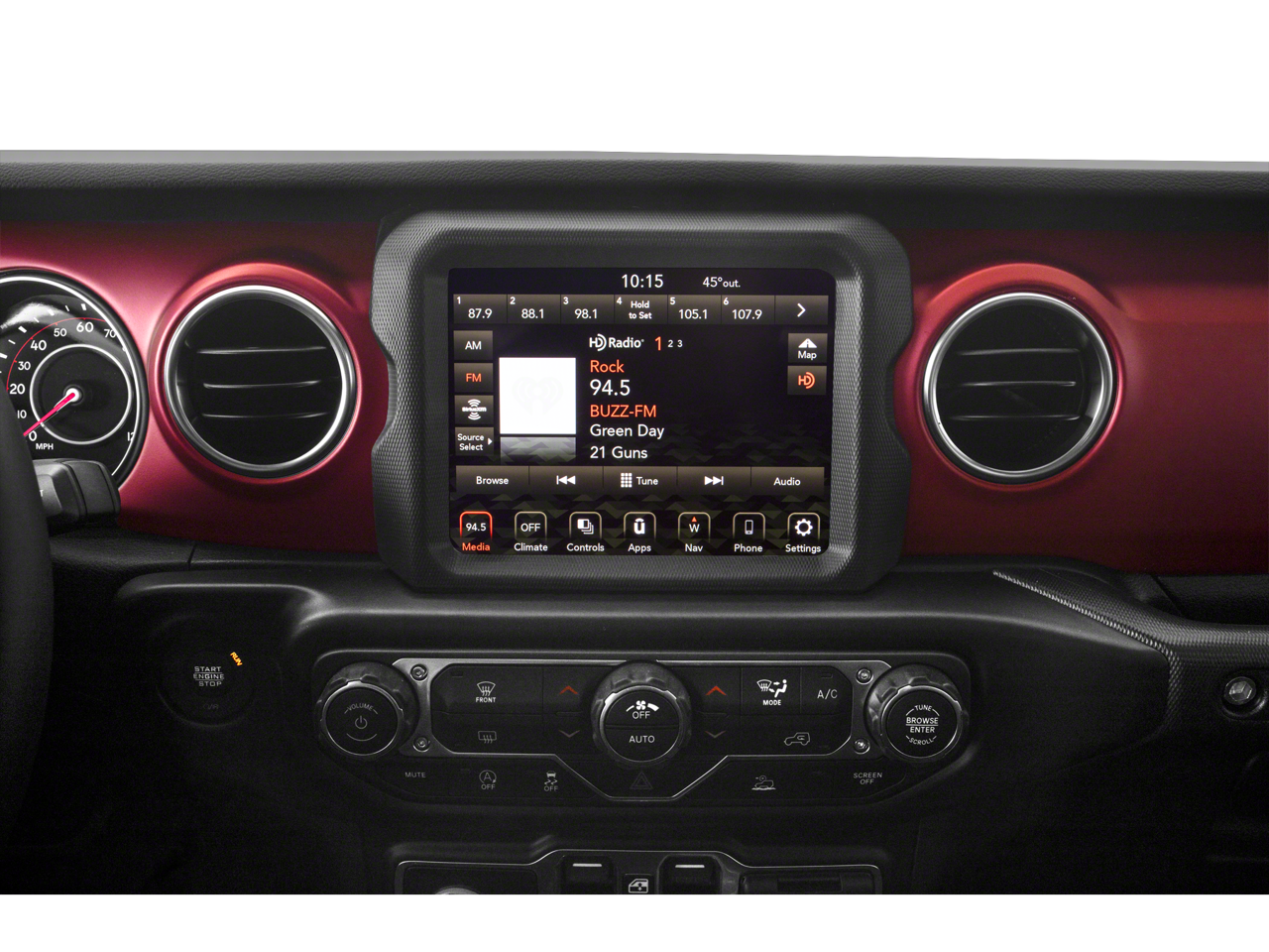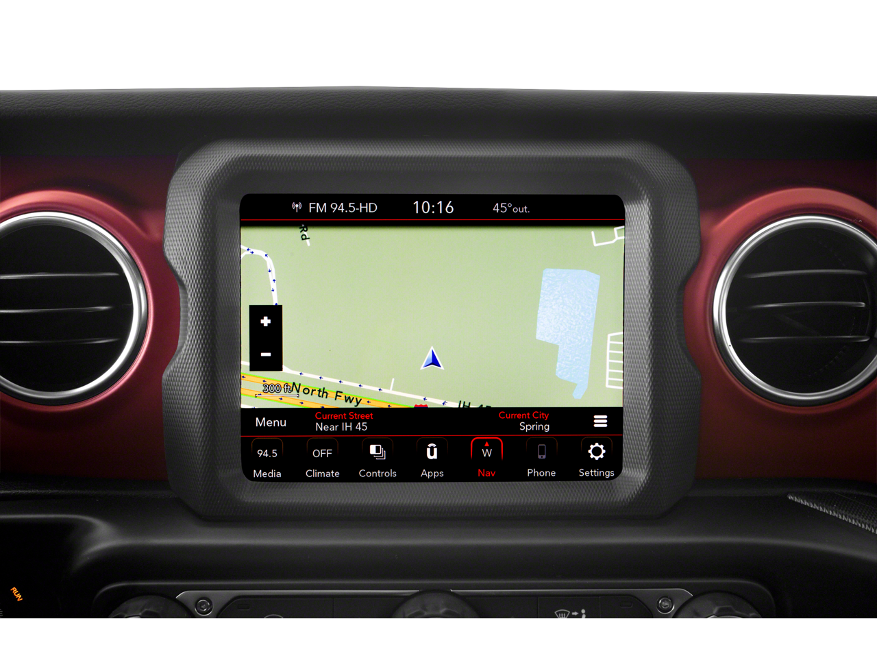 The Gladiator Rubicon's premium interior features luxurious leather-trimmed seating, a heated steering wheel, and a state-of-the-art Uconnect 4C Nav infotainment system with an 8.4-inch display. Stay connected and entertained on every journey with seamless integration of your smartphone via Apple CarPlay and Android Auto.
