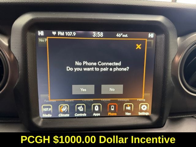 Step inside and you'll be greeted by a well-appointed interior, featuring premium cloth low-back bucket seats, a heated steering wheel, and a state-of-the-art Uconnect 4C Nav system with an 8.4-inch touchscreen display. Stay connected with Apple CarPlay, Android Auto, and a 4G LTE Wi-Fi hotspot, while enjoying the premium sound of the Alpine audio system.