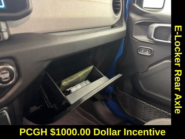 The Willys edition of the Gladiator is packed with off-road-focused features, including heavy-duty shock absorbers, an electronic locking rear differential, and off-road-tuned suspension. The bold, rugged styling with a black grille, fender flares, and Willys decals give this Gladiator a distinctive and adventure-ready appearance.