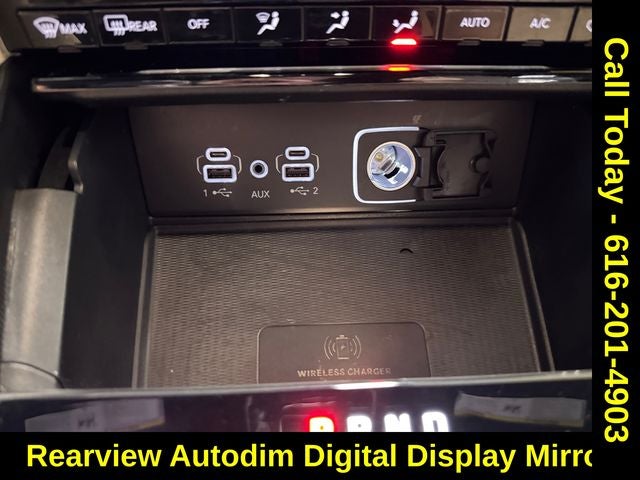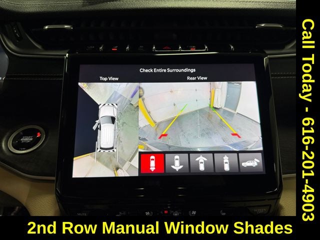 Luxury Tech Group II (2nd Row Manual Window Shades, Auto-Dimming Exterior Driver Mirror, Capri Leatherette w/Axis II Seats, Integrated Off-Road Camera, Intersection Collision Assist System, Memory Steering Column, ParkSense Front/Rear Park Assist w/Stop, Passive Entry - Front/Rear Doors, Liftgate, Power Tilt/Telescope Steering Column, Rain Sensitive Windshield Wipers, Rear Back Up Camera Washer, Rearview Autodim Digital Display Mirror, Surround View Camera System, Ventilated Front Seats, and Wireless Charging Pad), Quick Order Package 23E, Wicker Beige/Black Artificial Leather, 3rd row seats: split-bench, Auto High-beam Headlights, Dual-Pane Panoramic Sunroof, Heated door mirrors, Interior Rear Facing Camera, Memory seat, Navigation System, Power Liftgate, Radio: Uconnect 5 Nav w/10.1 Display, Wheels: 18 x 8.0 Polished/Painted Aluminum, 3.45 Rear Axle Ratio, 4-Wheel Disc Brakes, 6 Speakers, ABS brakes, Active Noise Control System, Air Conditioning, Alloy wheels, AM/FM radio: SiriusXM with 360L, Anti-whiplash front head restraints, Audio memory, Automatic temperature control, Brake assist, Bumpers: body-color, Capri Leatherette Seats, Compass, Delay-off headlights, Driver door bin, Driver vanity mirror, Dual front impact airbags, Dual front side impact airbags, Electronic Stability Control, Emergency communication system, Four wheel independent suspension, Front anti-roll bar, Front Bucket Seats, Front Center Armrest w/Storage, Front dual zone A/C, Front fog lights, Front License Plate Bracket, Front reading lights, Fully automatic headlights, Garage door transmitter, Heated front seats, Heated rear seats, Heated steering wheel, Illuminated entry, Knee airbag, Low tire pressure warning, Manual Fold Seatbacks, Normal Duty Suspension, Occupant sensing airbag, Outside temperature display, Overhead airbag, Overhead console, Panic alarm, ParkView Rear Back-Up Camera, Passenger door bin, Passenger vanity mirror, Power door mirrors, Power driver seat, Power passenger seat, Power steering, Power windows, Radio data system, Rear air conditioning, Rear anti-roll bar, Rear reading lights, Rear window defroster, Rear window wiper, Reclining 3rd row seat, Remote keyless entry, Security system, Speed control, Speed-Sensitive Wipers, Split folding rear seat, Spoiler, Steering wheel mounted audio controls, Tachometer, Telescoping steering wheel, Tilt steering wheel, Traction control, Trip computer, Turn signal indicator mirrors, Variably intermittent wipers, and Voltmeter.