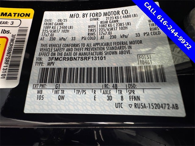 Convenience Package (Front Driver/Passenger Seat Back Map Pockets, Heated 8-Way Power Driver's Seat, LED Fog Lamps, Premium Wrapped Steering Wheel, and Universal Garage Door Opener (UGDO)), Equipment Group 200A, Automatic temperature control, Rear Parking Sensors, Wheels: 17 Carbonized Gray-Painted Aluminum, 4-Wheel Disc Brakes, 6 Speakers, ABS brakes, Air Conditioning, Alloy wheels, AM/FM radio: SiriusXM, AM/FM Stereo, Auto High-beam Headlights, Brake assist, Cloth w/Easy-to-Clean Front Bucket Seats, Compass, Delay-off headlights, Driver door bin, Driver vanity mirror, Dual front impact airbags, Dual front side impact airbags, Electronic Stability Control, Emergency communication system: SYNC 4 911 Assist, Four wheel independent suspension, Front anti-roll bar, Front Bucket Seats, Front Center Armrest, Front reading lights, Fully automatic headlights, Heated door mirrors, Illuminated entry, Knee airbag, Low tire pressure warning, Occupant sensing airbag, Outside temperature display, Overhead airbag, Overhead console, Panic alarm, Passenger door bin, Passenger vanity mirror, Power door mirrors, Power steering, Power windows, Radio data system, Rear anti-roll bar, Rear reading lights, Rear seat center armrest, Rear window defroster, Rear window wiper, Remote keyless entry, Security system, SiriusXM, Speed control, Speed-sensing steering, Speed-Sensitive Wipers, Split folding rear seat, Steering wheel mounted audio controls, SYNC 4 w/Enhanced Voice Recognition, Tachometer, Telescoping steering wheel, Tilt steering wheel, Traction control, Trip computer, and Variably intermittent wipers.